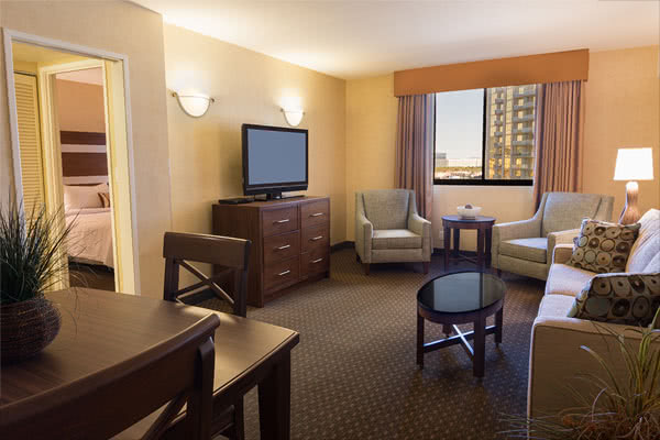 With shimmering lights and stunning sites, Vegas is an internationally celebrated city known for gambling, shopping, fine dining, and festive nightlife. Situated one block off of the famous Las Vegas Strip, your resort is close to all of the excitement, but distanced enough to ensure a quiet night’s sleep.